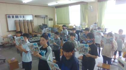 音楽の学習が始まりました。目次を見て、どのような学習があるのか見通しをもちました。その後、「翼をください」をみんなで歌いました。教室でも毎朝歌っていきたいですね。