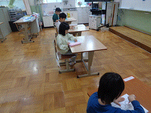 登校後は朝の用意が終わると思い思いに過ごしていますが、8時半を超えると学習に向けて心を整える時間へと移行していきます。「自分たちが学習に向かうために座ってできること」と「心を落ち着けるために静かに過ごせること」を自分たちで見つけて過ごしています。