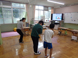 5月の「おめでとう会」に向けて、子どもたち4人と担任も交えてバルーンとツバメダンスの練習をしました。ツバメダンスは2年生と6年生は昨年踊っているので、実際に一年生の前で踊り、踊り方を教えてくれました。