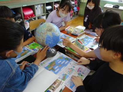 社会科の学習では、我が国の国土の様子についてこれから調べていきます。まずは、グーグルマップで地球の様子を見たり、地球儀を見たりして気付いたことを話し合い、世界の中の日本について学習問題をつくりました。