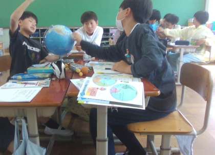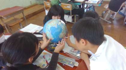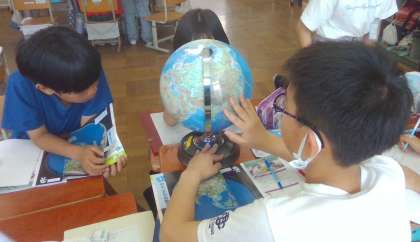 休み時間にも地球儀や地図帳を見て、楽しんでいる姿がありました。