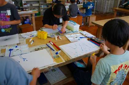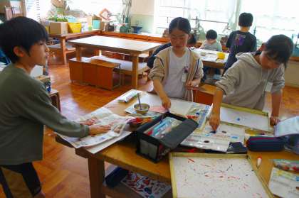 絵の具には、筆で描くだけでないいろいろな技法があります。様々な表現を楽しみながら試してみました。