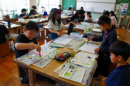 友だちとのやり取りも楽しみながら、素敵な作品がたくさんできました。今週の学習でできた画用紙を使って、来週作品を仕上げたいと思います。