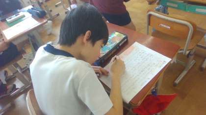この時間は、昨日書いた文章を友だちと読み合いました。印象に残ったことがそれぞれ違ったり、同じでも感じ方の表現がそれぞれでした。