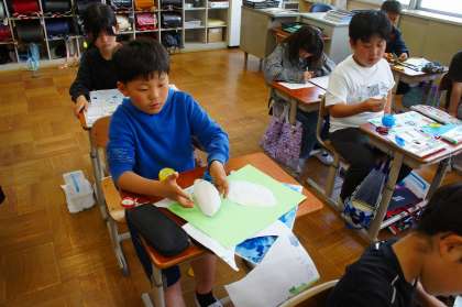 友だちの作品を見て、「えっ、すごいね!」「めっちゃいいやん!」と、前向きな言葉かけをしている子が多かったです。素敵ですね。