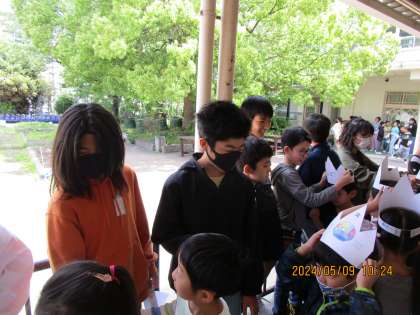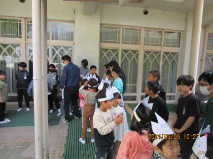 1年生をむかえる会では、1年生のために心をこめて作った冠をプレゼントし、1年生の手を引いて入場しました。1年生の歩くペースに合わせる6年生の姿が優しく、またかっこよかったです。