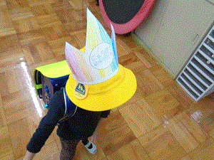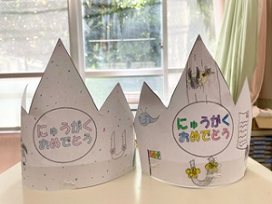 入場は6年生と一緒でしたが、退場は1年生だけで歩きました。しっかり歩く姿に入学して間もないですが、たくましく成長した姿を感じました。冠がお気に入りだったようで、帰る時にも着用していました。