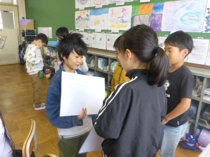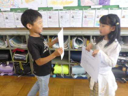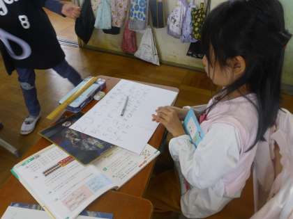3年生では、算数科「わり算」を続けています。今回は、自分たちで問題カードを作って復習をしました。「お尋ね文」に気をつけ、お互いで間違いがないか確かめ合いながら、テストに向けてしっかり復習しました!