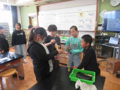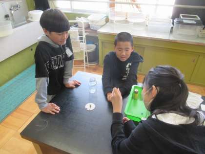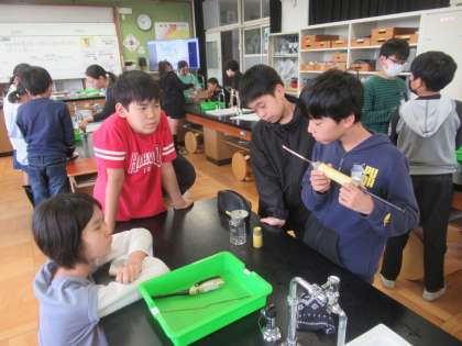 ものが燃えるとき、空気中の気体にはどんな変化があるのか、気体検知管を使って空気中の気体の量を調べたり、石灰水を使って調べました。