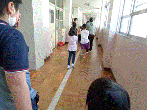 実際に放送がはいると、活動の途中でも手を止めて、避難する準備に素早くうつっていました。避難中も鼻と口をタオルで覆い移動していました。