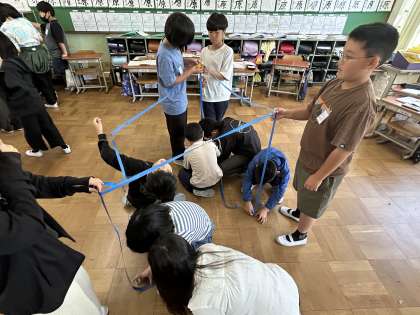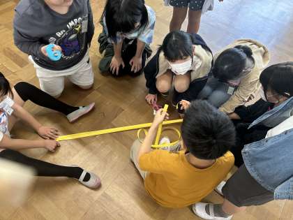 友だちと協力して作り、人が何人も入ることができる大きさを体感することで、