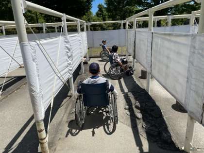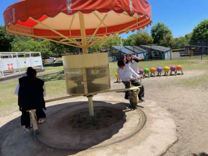 探検の国で車いす体験や回る自転車体験をしました!