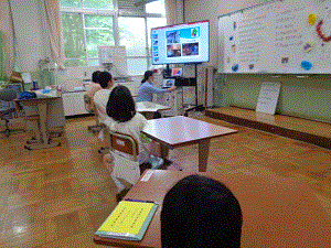5時間目に6年生が修学旅行に行った時の写真をみんなで見て、修学旅行を振り返りました。振り返りが終わった後、6年生からみんなにサプライズのお土産がありました。