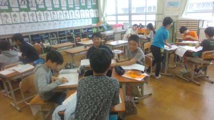 日本の社会の課題と解決方法について優先順位をつけて考えました。「環境に優しい町にすることで、誰もが安心して暮らせるから、環境問題を優先して解決したいな。」「平和な国にすることは、憲法の平和主義につながるね。」など、自分の考えをもちながら友だちと話し合い、優先順位を付けていきました。