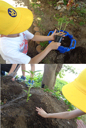 だれがどの苗を植えるか決めるときに全員の希望を聞きました。子どもたちの希望がかぶってしまい、じゃんけんで決めようかと話をしたときに2年生が「あっ!1年生は今年初めて植えるから譲ってあげよう。」と言ってくれました。6年生も「譲る。」と1年生の希望が通るようにしてくれました。
