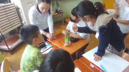 実際に発芽した豆苗をじっくりと観察することを通して、どのようにして発芽しているのか、予想を立てることができました。