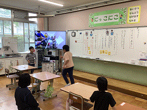 チャレンジ体験の活動で中学校のお兄さんやお姉さんが梅小路小学校に来てくれました。うぐいす学級の教室にも日替わりで来てくれて子どもたちと関わってくれました。