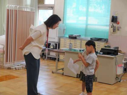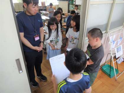 生活科で、「なかよしいっぱいがっこうたんけん」の学習を進めています。学校のいろんなお部屋について調べていて、そのお部屋の先生にインタビューをしています。「失礼します。1年の〇〇です。」「質問をさせていただいていいですか。」と丁寧にあいさつをしてインタビューを進めることができていました。質問を事前に考えて練習していたのですが、中には、「このボタンは何のボタンですか。」「これはどんなときに使うものですか」とそのときに考えた質問をしているグループもありました。タブレット操作にも慣れて、写真を上手にとることができていました。まだインタビューをしていないグループもあるので、他の1年生にお部屋のことを知らせる準備を、少しずつ進めていきます。