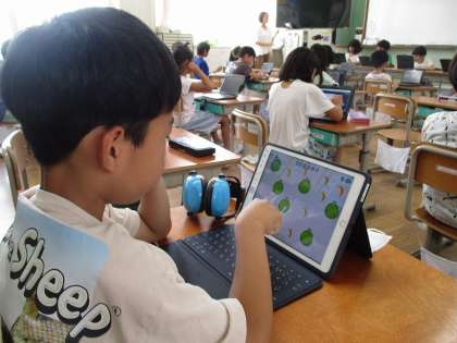 交流学習の英語活動で「いくつかクイズをしよう」の学習をしました。ロイロノートを使って、果物の数がいくつあるかクイズを出すためのシートを作りました。ロイロノートの使い方もよくわかってきたようです。今日、作ったシートを使って、次回の学習では友達同士でクイズを出し合うそうです。楽しみです。