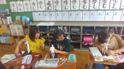 骨組みから動きを作っていきました。「もう少し膝を曲げるといいよ。」「顔の向きを斜めにするといいね。」などと、お互いにアドバイスし合っていました。