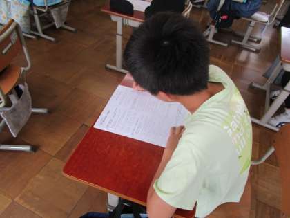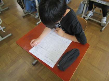 家庭科「私の生活大発見」のテストにチャレンジ。実習したことや実践したことを思い出しながら問題に答えていきました。