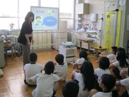 1年生には『保健室ってどんなところ?』という話をしました。きちんと話が聞けたので,けがをした時も上手に利用できています。