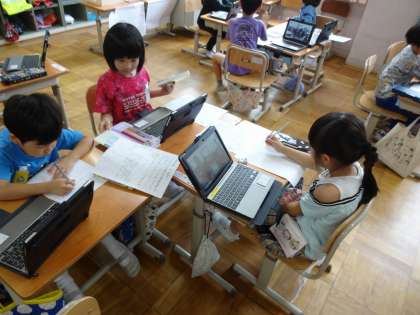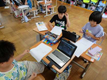 生活科「なかよしいっぱいがっこうたんけん」の学習を進めています。それぞれのお部屋についてインタビューで聞いたことを、絵と文でまとめています。タブレットで写真を撮らせてもらったので、その写真について話す練習もしています。そのお部屋の「とっておき」をみんなに伝えるのが楽しみな様子の1年生です。