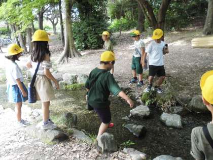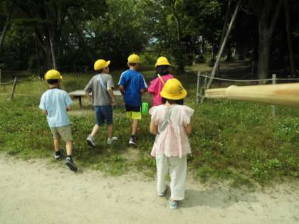 今日の1・2時間目に、梅小路公園に小さな友だちを探しに出かけました。