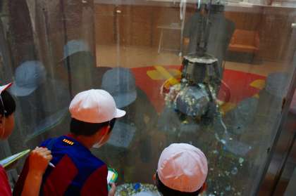 大量のごみがクレーンで動かされています。たくさんの種類のごみが「燃えるゴミ」として捨てられるので、均等にするためにしているそうです。もしかしたら、今日お家から出したごみ袋もこの中に・・・!?