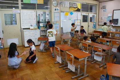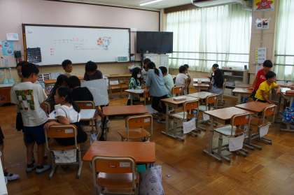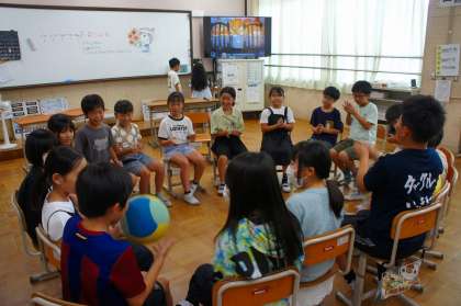 2組の活動の様子です。進化じゃんけん、爆弾ゲーム、「いつ・どこで・だれが・なにをした」ゲームなどで盛り上がりました。