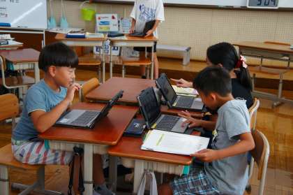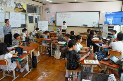 京都市に台風がきたとき、市ではどのような対策をするのか、調べて分かったことを交流しました。写真は2組の学習の様子です。1組は、3日(火)に学習する予定です。