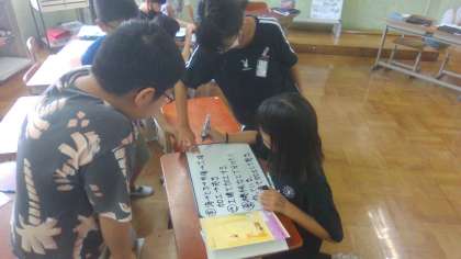 どのようにして水産加工品はつくられているのか、予想を立てグループで交流している様子です。