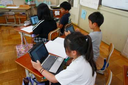 まずはアイデアスケッチをして、構図を決めています。どんな作品に仕上がるか楽しみですね。写真は1組の学習の様子です。