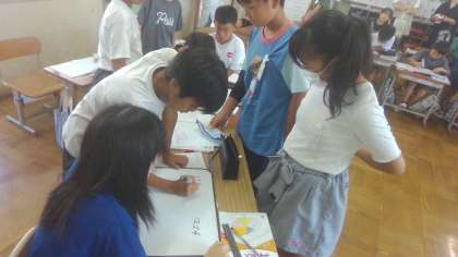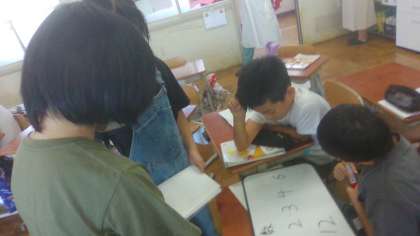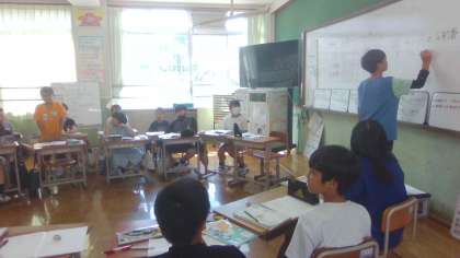 公約数の見つけ方を考えました。自分学び、グループ学び、みんな学びでどのように見つけたか考えを深めていきました。学びをまとめた後、たくさん問題に取り組んで、定着をはかりました。