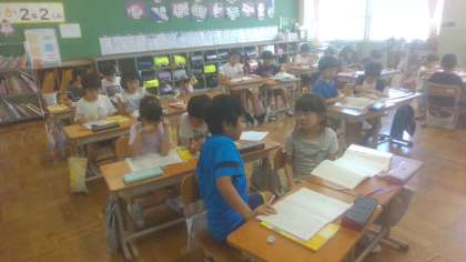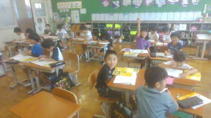 また、別の時間の国語科の学習では、なかまのことばということで「天気」や「お金」などの言葉をたくさん集めました。ペアワークも、活発に意見を出して話し合うことができていました。