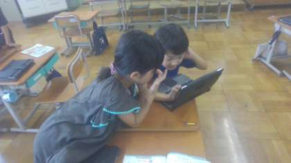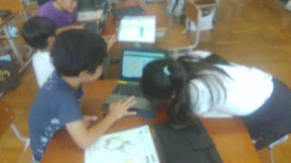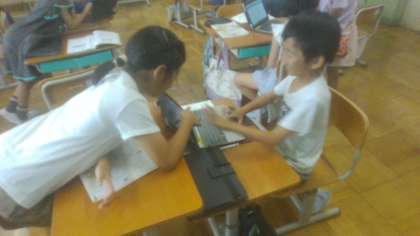 今日はタブレットで「ひっさんゲーム」をしました。合計した数が大きくなった方の勝ち、ということで2人組で何度も計算して楽しく活動することができました。