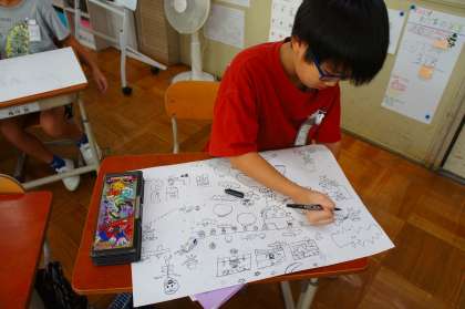 下描きを進めているところです。ていねいに、大きく、楽しく!アイデアが広がって、見ていて楽しい作品になればいいですね。