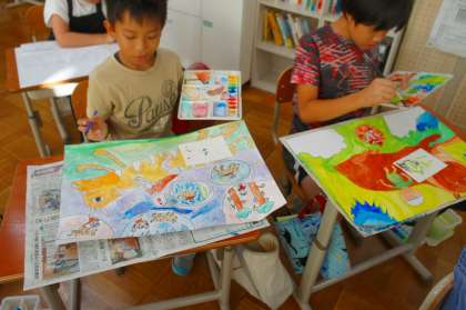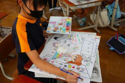 学習の様子です。ていねいに色を作ったり、はみ出さないように注意して塗ったり、とても頑張っていました。