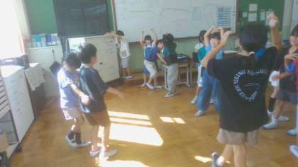 外に干されている洗濯物になりきって動いたり、イラストの天気のときはどんな気持ちになるかを考えたりしました。みんな真剣に、自分の心と向き合うことができた時間でした。