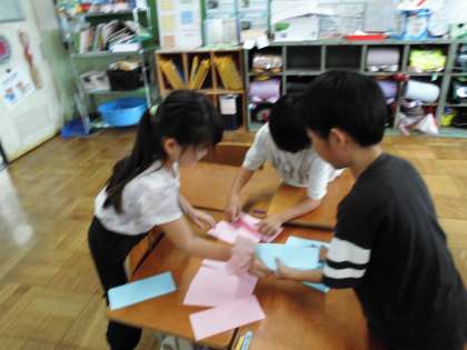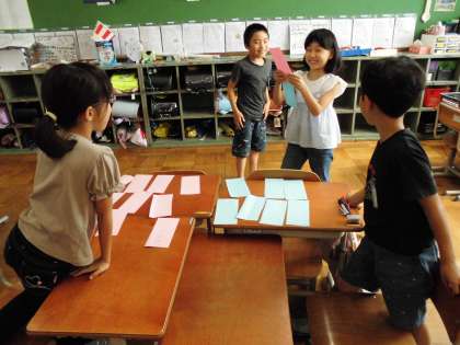 主語と述語が文の中にあることを知り、「お手紙」の本文の中から主語と述語を見つけて印をつけました。その後に『主語と述語ゲーム』をしました。楽しんで主語と述語を学んでいました。