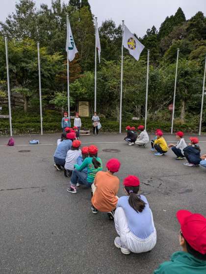 体操したり、ボール送りをしたりして身体を目覚めさせます。