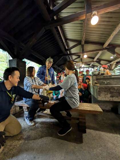 息を合わせて火をおこし、火の粉が見えるとみんな大喜びです!