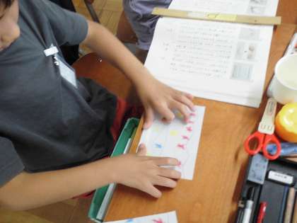 国語科「紙コップ花火の作り方」の文章を読んで、実際に紙コップ花火というおもちゃを作ってみました。作り方の説明文を何度も読み返し、班でアドバイスし合ったりチェックし合ったりしながら、先生の力を借りずに自分たちの力で作ることができました。