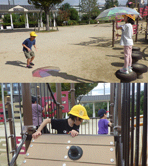 梅小路公園や多目的室で一緒に遊び交流を楽しむことができました。活動後には「楽しかった。」「また、会いたいね。」という感想が聞かれました。