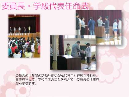 自分たちが「学校生活をよりよくするために」委員会活動をどうがんばっていくのか考えて全校に伝えました。委員会の仕事をやり遂げることで,子どもたちが主体的に動く学校になりますね。