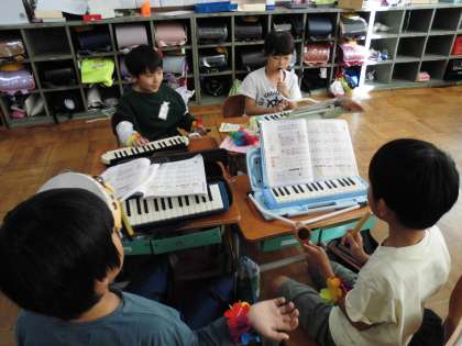 自分たちで楽器のパートを選んで、練習して発表しました。
