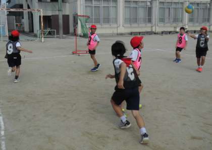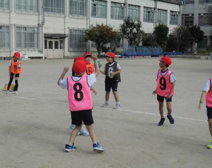 1年生のときにしたルールを復習したり、久しぶりにゲームをしたりして体を動かしました。寒くなってきましたが、元気に体を動かしていました。