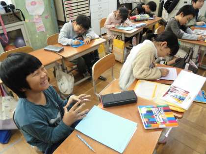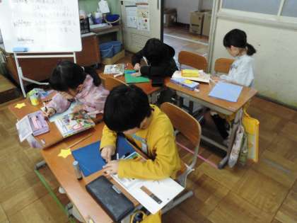 国語科では「紙コップ花火の作り方」を読んで、自分たちの作ったおもちゃの作り方を書いた説明書を完成させました。自分だけの説明書ができたので、今度はお互いの説明書を読み合う活動をしていきます。
