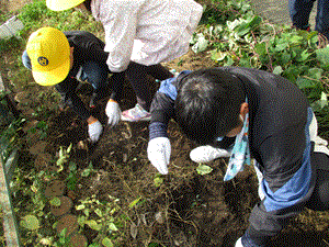 実際に掘り始めると大きく育ったお芋に「これ、めっちゃ大きいかも。」「全然抜けない。」と苦戦していましたが、みんなで交代しながらお芋を掘りました。