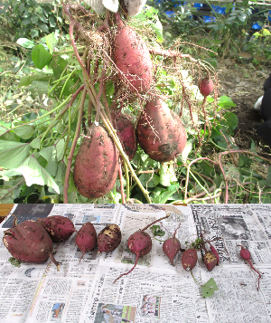 教室に帰って数や重さを確認すると、数は大小さまざまではありますが10個と多く、一番大きいお芋は1.5kgもありました。今回収穫したお芋や蔓は今後の学習に活用していきたいと思います。